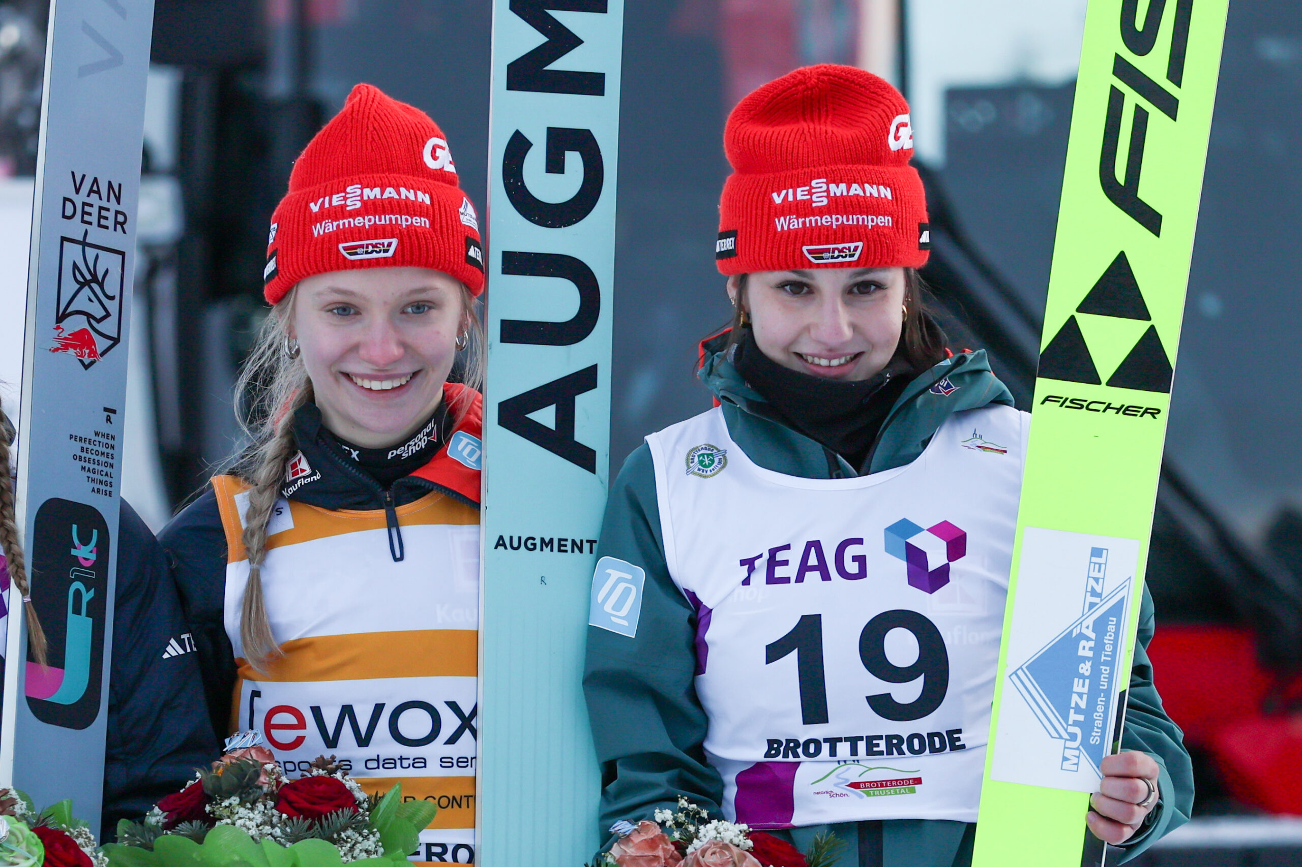 Die deutschen Juniorinnen gingen in diesem Teamwettbewerb als Titelverteidigerinnen an den Start, jedoch mit veränderten Athletinnen. Neben Anna-Fay Scharfenberg und Julina Kreibich, die sich im letzten Jahr noch über Gold freuen durften, standen in diesem Jahr Emily Teubner und Megi Lou Schmidt am Start. Nachdem es im Einzelbewerb mit Rang Fünf für Deutschland nicht für eine Medaille reichte, durften die Juniorinnen des DSV heute jubeln. Scharfenberg (95,0/93,5 m), Teubner (95,0/93,0 m), Schmidt (87,5/87,0 m) und Kreibich (95,5/93,0 m) landeten mit 919,5 Punkten auf dem zweiten Platz und sicherten sich die Silbermedaille.