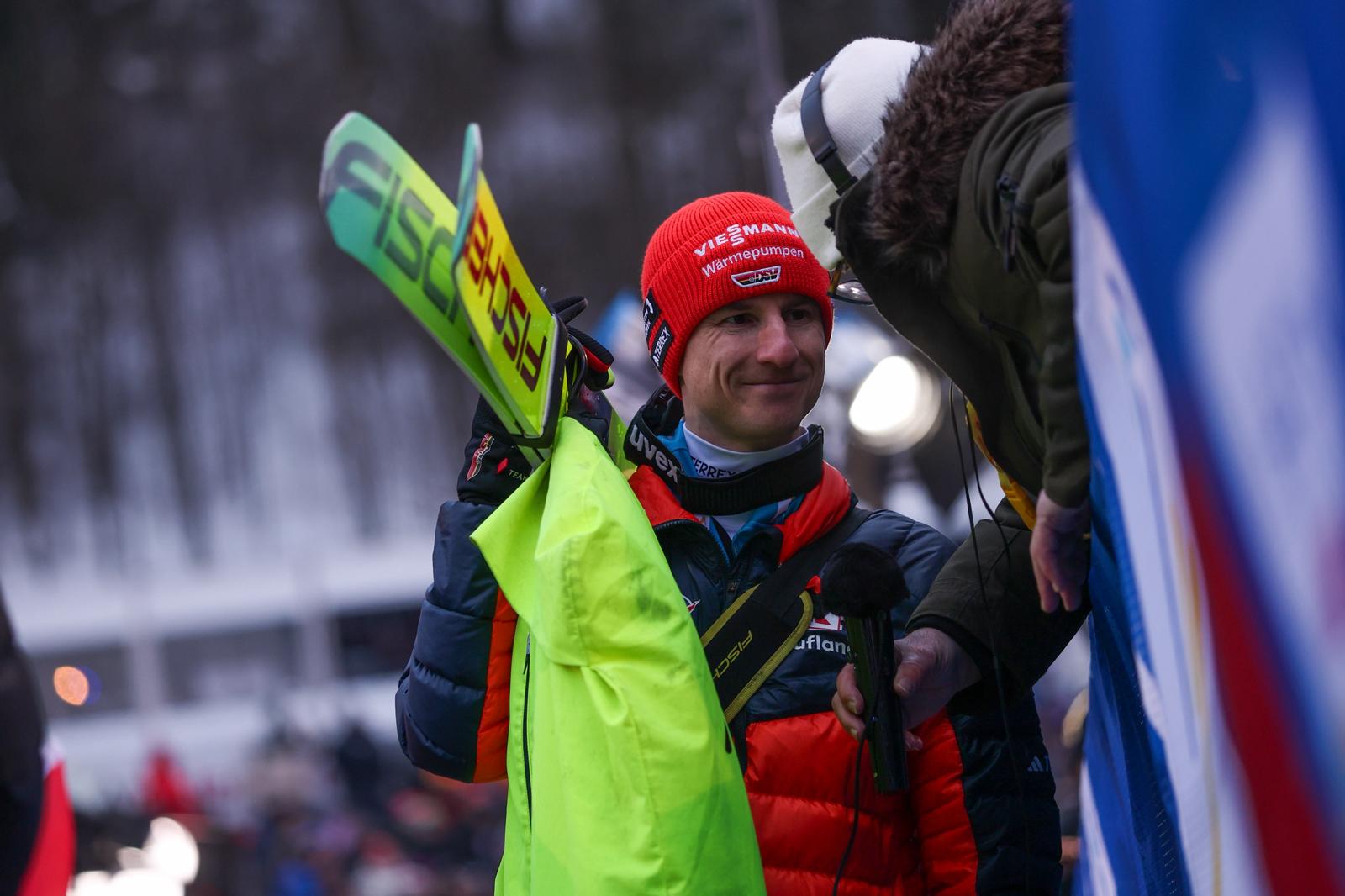 Karl Geiger: „Ja, würde ich schon so sagen. In dieser Saison habe ich es nicht mehr so auf den Schirm gehabt, dass ich noch auf das Podium springe, sondern ich habe mir gedacht, ich muss mich jetzt irgendwie aus dem Sumpf wieder rausziehen. Was auch immer dann kommen mag, ich möchte diesen Weg gehen, aber ich versuche mich möglichst von den Ergebnissen zu lösen, was natürlich nicht einfacher ist, wenn man dann wieder keine zweiten Sprünge kriegt und so weiter. Aber dieser dritte Platz bedeutet mir unglaublich viel.“