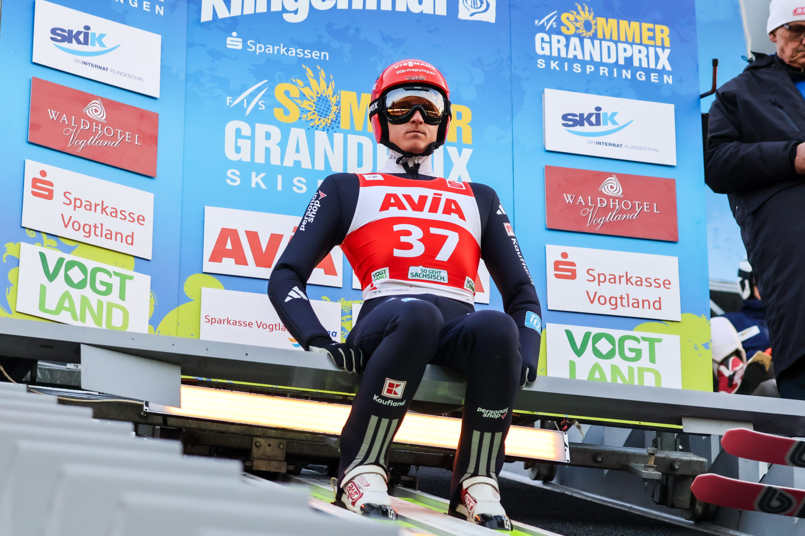 Karl Geiger: „Also, Klingenthal ist immer ein hervorragendes Pflaster, was die Zuschauer angeht. Ich bin auch so extrem gerne da. Die Schanze ist cool, wenn auch nicht ganz einfach. Ich weiß, dass sie sehr streut. Ich habe hier schon sehr viele sehr gute, aber auch sehr viele sehr schlechte Wettkämpfe gemacht. Deshalb ist es kein Selbstläufer hier. Aber ich weiß, dass ich sie grundsätzlich kann. Nur so wie heute geht sie nicht.“