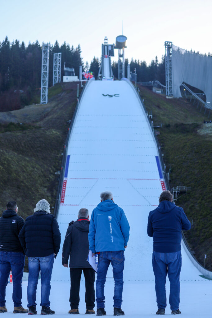Schanzentaufe im Rahmen des FIS Skisprung Weltcups in Klingenthal durch Thomas Hennig (Landrat Vogtlandkreis), Manfred Deckert (Präsident VSC Klingenthal) und Matthias Buse (ehemaliger Athlet unter Harry Glaß).