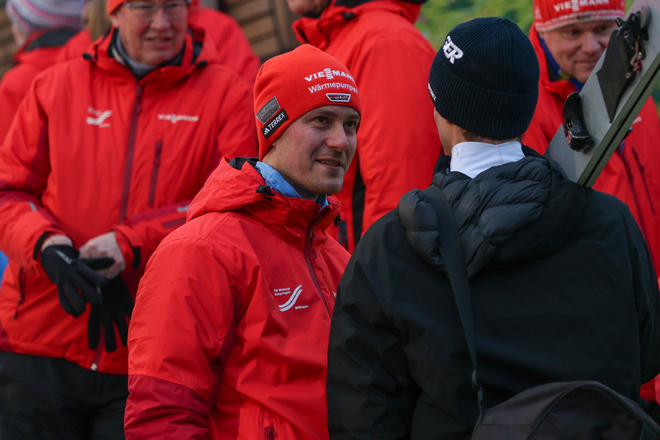 Stephan Leyhe: „Ich war seit meinem Rücktritt bis jetzt noch nicht an der Schanze, also ist der Weltcup hier in Willingen tatsächlich der erste, den ich wieder live sehe. Aber natürlich habe ich auf der Couch dann schon immer mal zugeschaut, was die Jungs so machen. Ich vermisse auch eher die Jungs bzw. das Team als das Skispringen an sich, weil ich mit diesem Kapitel wirklich komplett abgeschlossen habe und damit fertig bin.“